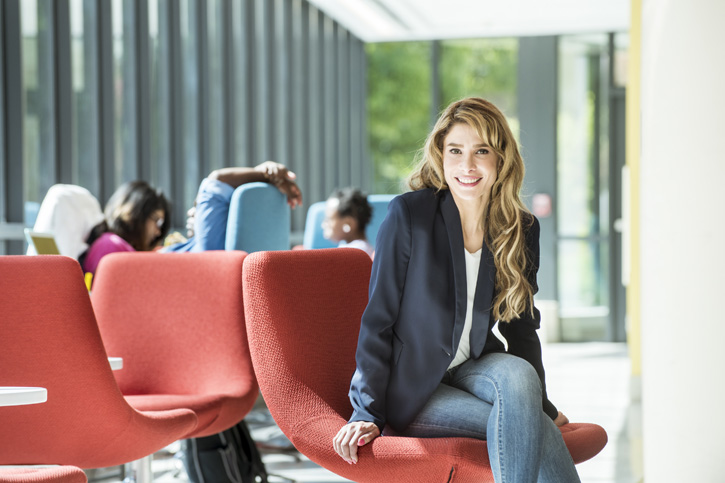 Arwa Sawan, a Washington, D.C.-based producer and host of news programming for the Alhurra television network, says her Bachelor of Individualized Study degree will help her tell compelling stories and market them to the widest audience. Photo by Ron Aira.
