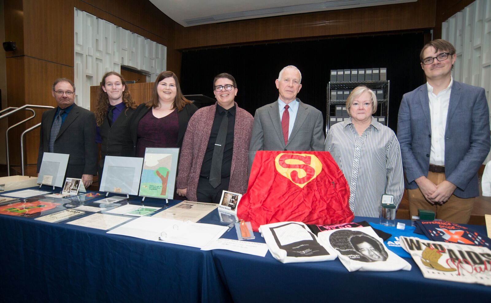 Students with the parents of Matthew Shepard and items from his childhood. Photo courtesy of the National Museum of American History