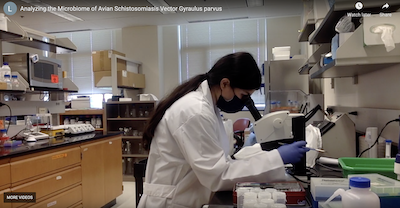 Louise Singer, a senior biology major, used her OSCAR funding to examine snails from two different lakes in Fairfax County. Her video presentation is called “Analyzing the Microbiome of Avian Schistosomiasis Vector Gyraulus Parvus.”