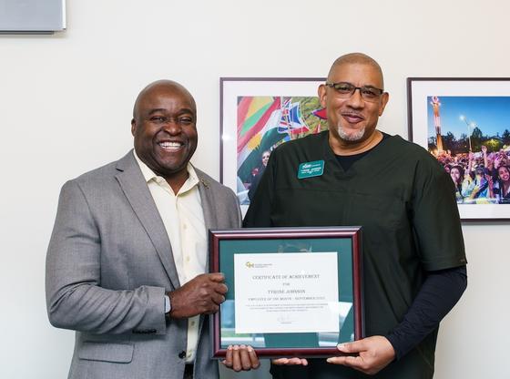 Erin Wisman, associate medical director of SHS, said that “whether he is assisting students who are anxious about a blood draw or working with the clinical team to solve complex operational challenges, Tyrone's demeanor is consistently calm, thoughtful, and respectful.”