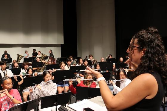 “I oversee the comprehensive band program, which is something I’ve worked toward over the past 19 years,” she said. Her program includes symphonic and concert bands, wind and percussion ensembles, jazz groups, chamber music, and a marching band with color guard.