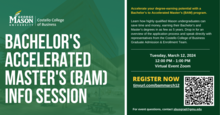 Accelerate your degree-earning potential with a Bachelor's to Accelerated Master's (BAM) program. Join admissions representatives from the Costello College of Business at a Virtual Information Session on Tuesday, March 12, 2024 from 12:00 PM - 1:00 PM EDT.